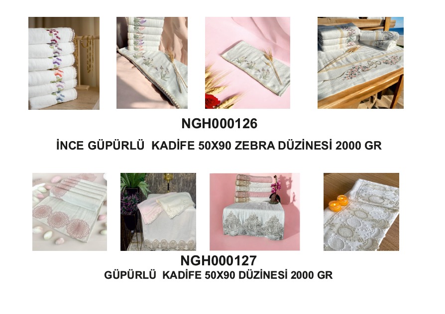 Bu ürün sayfasında güpürlü ve özel desen detaylarına sahip kadife havlu modelleri bulunmaktadır. Sipariş sırasında istediğiniz modeli belirtebilirsiniz.