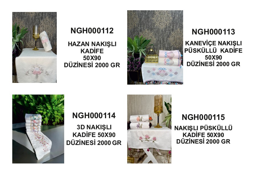 Kadife Nakışlı / Püsküllü / Kanaviçe Havlu Koleksiyonu 50×90