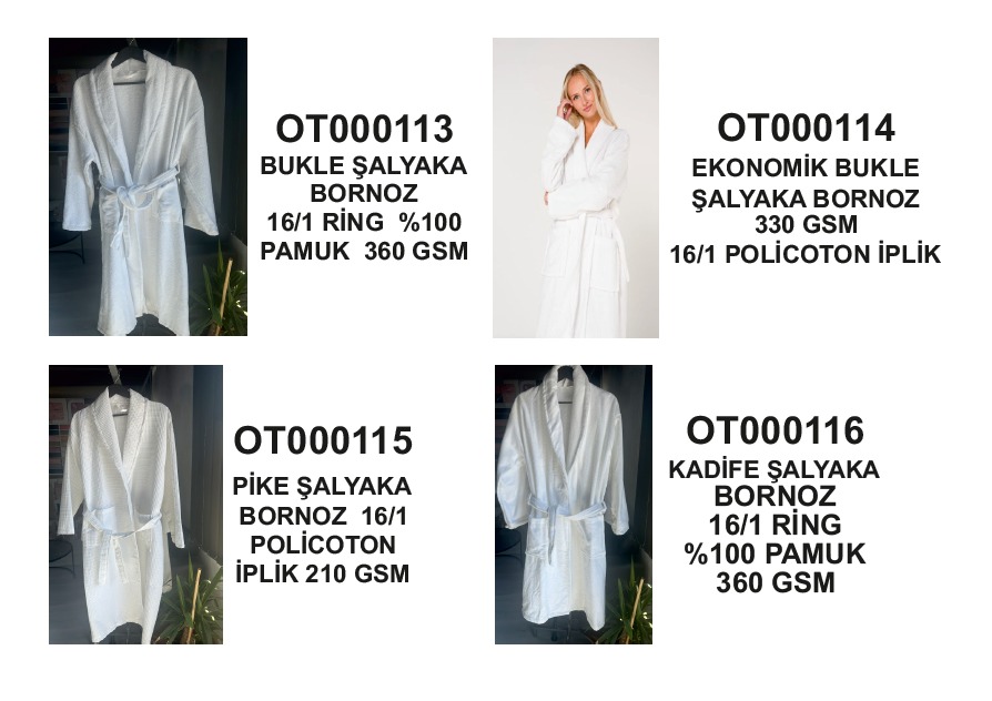Şalyaka Bornoz Koleksiyonu Bukle / Pike / Kadife %100 Pamuk & Polikotton